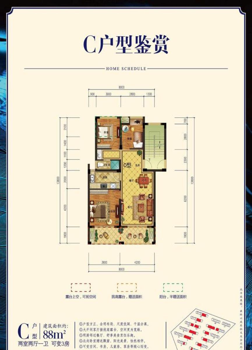 金厦银湖城C户型-2室2厅1卫-88.0㎡