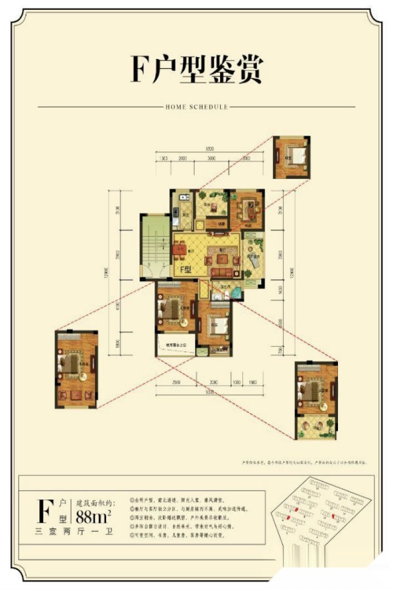 F户型-3室2厅1卫-88.0㎡