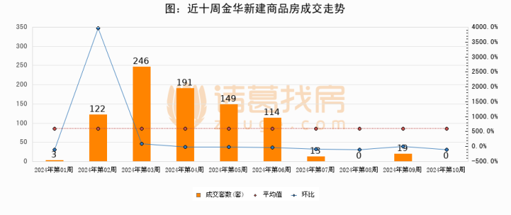 进入2024年第09周(02月26日-03月03日),金华新建商品房成交0套,较上周减少19套,环比下降100%