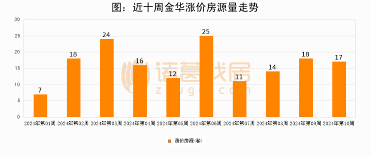 从调价房源来看,第9周金华涨价房源17套,较上周下降5.6%。与此同时,9周涨价房源占比回落7.74个百分点,业主信心小幅波动,购房者可则需入市。