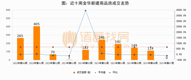 进入2024年第06周(02月05日-02月11日),金华新建商品房成交0套,较上周减少114套,环比下降100%