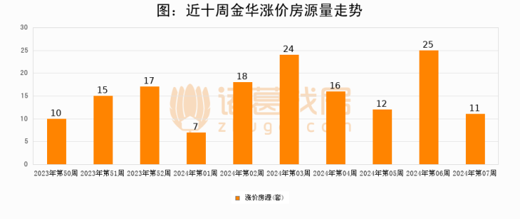 从调价房源来看,第6周金华涨价房源11套,较上周下降56%。与此同时,6周涨价房源占比回落4.51个百分点,业主信心小幅波动,购房者可则需入市。