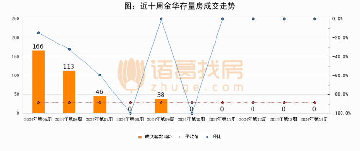 进入2024年第13周(03月25日-03月31日),金华新建商品房成交0套,较上周持平
