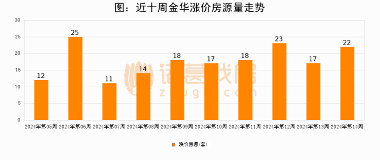 从调价房源来看,第13周金华涨价房源22套,较上周上涨29.4%。与此同时,13周涨价房源占比回落5.58个百分点,业主信心小幅波动,购房者可则需入市。